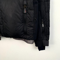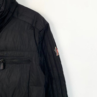 Grade A Moncler H11442 Blagnac Series Black Logo Patch Down Jacket, size 2 (M), 95% new with minor peeling, a sleek and practical piece that combines luxury and functionality for winter wear.