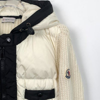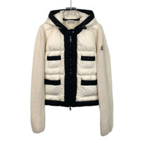 Grade A X12113 Moncler Cardigan Series Off-White Hooded Zip-Up Down Jacket with Logo Patch, Size S, 98% new. Stay warm and chic with this elegant piece—shop now and make it yours!