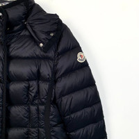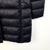Grade A H12203 Moncler Hermine Series Black Quilted Hooded Down Jacket with Logo Patch, Size 0 (XS), 95% new with slight stains. Original price: $2,625. Timeless elegance meets ultimate warmth—don’t miss this iconic piece, shop now!