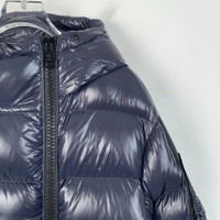 S-Grade Moncler X11420 Liriope Series Navy Blue Logo Letter Hooded Down Jacket, size 4 (L), 98% new, originally priced over $2,762 USD, a highly sought-after piece combining luxury and practicality.