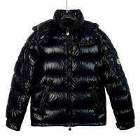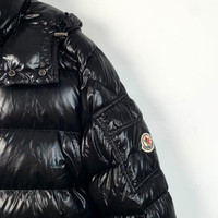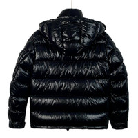 Grade A Moncler H11375 Maya Series Black Glossy Logo Patch Hooded Quilted Down Jacket, size 0 (XS), 98% new, originally priced at approximately $1,505 USD, a luxurious and functional outerwear choice for modern style.
