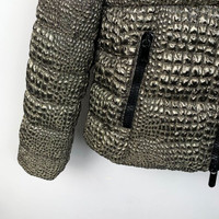 Crafted by Moncler, this stylish puffer jacket offers warmth and a modern look with its metallic silver finish. Filled with 90% goose down, it ensures optimal insulation during cold weather. The hood and front zipper closure provide added protection and convenience. • Front zip closure • Side zip pockets • Quilted design • Hooded for extra warmth • Made in Bulgaria H11725 Size: Womens M Condition: Pre-Owned Like New