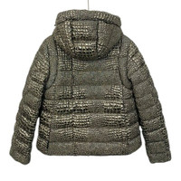 Moncler Metallic Silver Goose Down Puffer Jacket With Hood & Zipper Closure