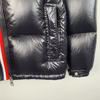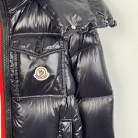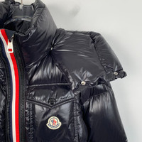 S-Grade Moncler H11339 Montbeliard Series Black Logo Patch Hooded Quilted Down Jacket, size 00 (XXS), 99% new, originally priced at approximately $2,315 USD, a premium and stylish winter essential with impeccable craftsmanship.