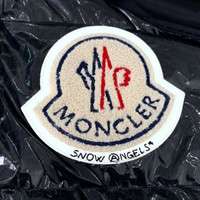 Moncler "Snow Angels" Black Hooded Puffer Jacket With Logo Patch & Snap Closures