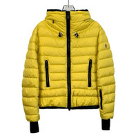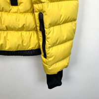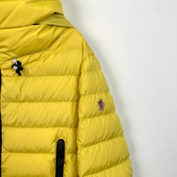 Grade A H12101 Moncler Voune Series Yellow Hooded Down Jacket with Logo Patch, Size 1 (S), 95% new with slight black marks. Stay cozy and bright in this stylish piece—shop now and make it yours!