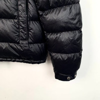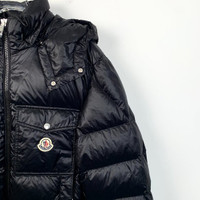 Grade A H12645 Moncler Wollaston Series 2023 Black Hooded Down Jacket with Logo Patch, Size 2 (M), 98% new. Stay warm and stylish with this premium piece—shop now and make it yours!