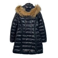 This Moncler down puffer coat features a luxurious fur-trimmed hood and a sleek, longline silhouette. Designed to provide warmth and style, it is ideal for cold weather. • Longline quilted puffer design • Detachable fur-trimmed hood • Front zip and button closure • Side zip pockets • Moncler logo patch on sleeve H13206 Size: Womens 0 Condition: Pre-Owned Like New