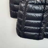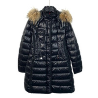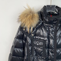 Moncler Womens Black Down Puffer Coat With Fur Trim Hood Longline Quilted Design