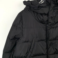 This Moncler down puffer jacket combines style and functionality. Its black color exudes elegance, while the ruffle hem adds a touch of femininity. Ideal for cold weather, the jacket offers warmth and comfort, featuring a hood for added protection. Its durable construction ensures long-lasting wear. • Front zipper closure • Dual front flap pockets • Elastic cuffs • Quilted design • Hooded style • Ruffle hem detailing 016375 Size: Womens S Condition: Pre-Owned Like New