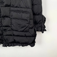 Moncler Womens Black Down Puffer Jacket With Hood & Ruffle Hem