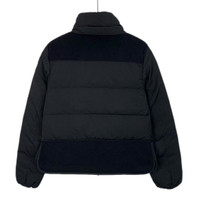 Moncler Womens Black Puffer Jacket With Wool Accents & Logo Patch