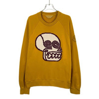 Moncler Yellow Crewneck Sweatshirt W/ Abstract Skull Pattern & Logo Patch Cotton