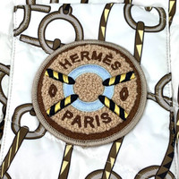 Crafted by Hermès Paris, this women's quilted jacket features a sophisticated chain pattern, providing both warmth and style. The jacket is made from a polyester outer with a cotton and viscose lining, ensuring comfort and durability. Ideal for those who value luxurious design and high-quality craftsmanship. • Buttoned front closure • Polyester outer • Cotton and viscose lining • Chain pattern design • Embroidered Hermès patch X12725