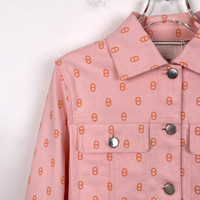 Hermes Pink Womens Jacket With Geometric Print & Button Closure