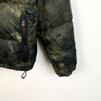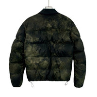 Crafted from wool and polyamide, this green tie-dye puffer jacket offers warmth and style. Featuring a ribbed collar and secure zip pockets. • Ribbed collar • Zip pockets • Tie-dye pattern • Elasticated cuffs • Drawstring hem H13743 Size: Mens 48 Condition: Pre-Owned Good