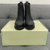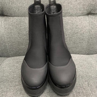 Crafted with precision, these boots feature a sleek black design and durable materials, offering both style and comfort for versatile use. • Round toe design ensures comfort • Thick sole provides excellent support and durability • Pull tabs for easy wear • Leather and cotton blend for quality and style New condition, no visible flaws. 000343