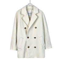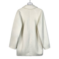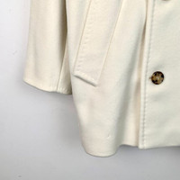 Grade A X11160 Max Mara Off-White Double-Breasted Lambswool Coat with Turn-Down Collar, Size XS (34), 95% New with Tags Wrap yourself in luxury with this Max Mara lambswool coat, featuring a refined double-breasted design and classic turn-down collar. Designed in size XS (34), this elegant piece is in 95% new condition with original tags, showcasing slight imperfections that don’t compromise its timeless appeal. Perfect for elevating your winter wardrobe.