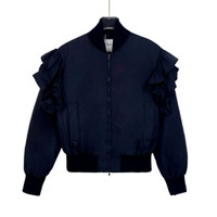 MaxMara - Max Mara Ruffled Sleeve Bomber Jacket Size 8 Nylon & Polyester Black