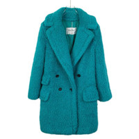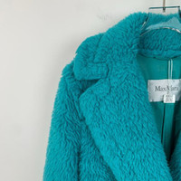 MaxMara - Max Mara Turquoise Teddy Bear Wool & Alpaca Coat Womens Double-Breasted Longline