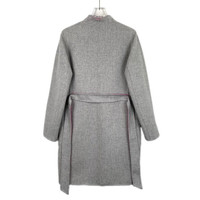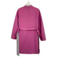 Maxmara Womens Reversible Pink & Gray Wool Belted Coat V-Neck Long Sleeves Size