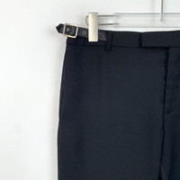 Mens Black Virgin Wool Dress Pants With Adjustable Waist Tabs