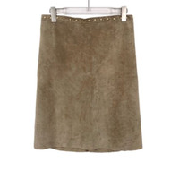 'S MaxMara - S Maxmara Brown Calfskin & Silk Skirt With Stud Accents Size 38