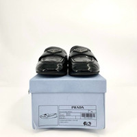 Elegant and durable, these Prada flats offer a sleek design with a signature triangle logo. Crafted from glossy patent leather, ideal for polished looks. • Made In Italy For Superior Craftsmanship • Genuine Patent Leather Finish • Slip-On Design For Convenience • Prada Signature Triangle Logo Detail • Rubber Sole For Traction H6305