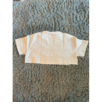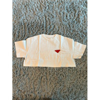 The Prada White Crop Top T-Shirt effortlessly combines style and comfort, featuring a striking red logo patch. Its premium cotton construction ensures a soft and breathable experience. • Short sleeves for ease of movement • Crew neckline for classic style • Cropped length for modern appeal Size: Womens XS Condition: Pre-Owned Like New