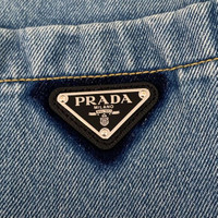 Prada Womens Short-Sleeve Denim Button-Up Shirt With Chest Pocket & Logo Patch