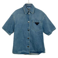 Crafted from premium denim, this Prada shirt offers a structured yet casual style. Features include a pointed collar, button closure, and iconic logo detail. • Short sleeves for a relaxed fit • Front button closure for easy wear • Signature Prada logo on chest pocket • Durable high-quality denim material • Made in Italy craftsmanship H12121 Size: Womens 36 Condition: Pre-Owned Like New