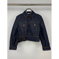 This Stella McCartney jacket exemplifies meticulous Italian craftsmanship. The dark blue denim offers a contemporary look with its cropped design, making it suitable for both casual and smart-casual ensembles. • Cropped fit with button closure • Two front buttoned pockets • Classic collar • Long sleeves with buttoned cuffs Size 40 002809