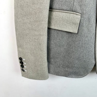 This sophisticated men's blazer by Thom Browne features a distinctive two-tone gray design and a signature striped sleeve. Made in Japan, it offers a professional look with a unique touch. It's crafted from high-quality cotton, ensuring comfort and style for business or formal settings. • Two-button closure • Four-button sleeve detail • Two flap pockets • Signature striped arm • Made in Japan H12817