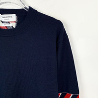 Crafted with precision, this Thom Browne sweater features a striking lobster graphic on the back and signature stripe details on the sleeve. Made from fine wool, it offers a professional yet artistic aesthetic suitable for refined tastes. • Crew neck design with ribbed edges • Lobster graphic on the back • Sleeve adorned with signature stripes • Button detail on cuffs • Made in Italy with premium craftsmanship 017338 Size: Womens 2 Condition: Pre-Owned Like New