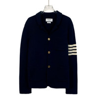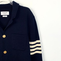 Thom Browne Navy Wool Blazer With Striped Arm & Gold Anchor Buttons Size 2