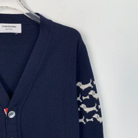 Thom Browne Navy Wool Cardigan With Dog Embroidery Size 1 V-Neck Button Fro