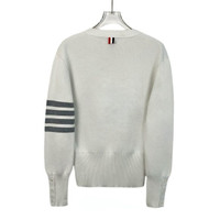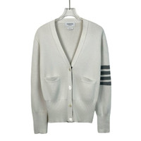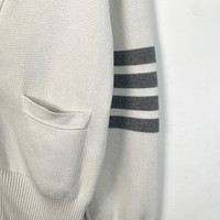 Thom Browne V-Neck Cardigan Sweater With Striped Sleeve Mens Size 42 Wool Beige