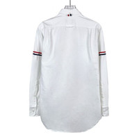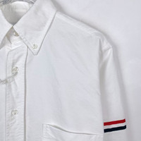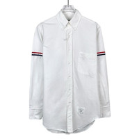 Thom Browne White Button-Up Shirt With Red & Navy Sleeve Stripes Made In Italy C