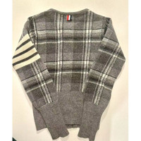 Thom Browne Womens Wool Cardigan With Plaid Pattern Button Closure & Striped Sle