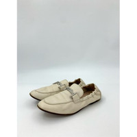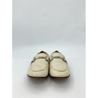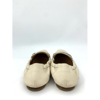 Tods Womens Ivory Leather Loafers With Silver Buckle Accent Size 37