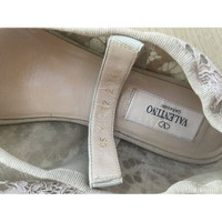 Valentino Garavani Ivory Lace Ballerina Flats With Studded Bow Accent For Women