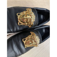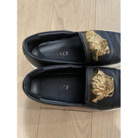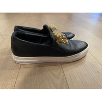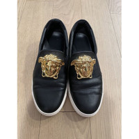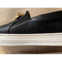 Versace Black Leather Slip-On Sneakers With Gold Medusa Detail