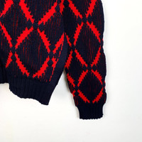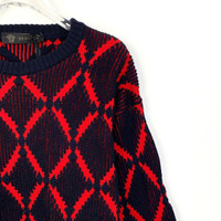 Versace Geometric Knit Sweater Size 42 Red & Black Wool