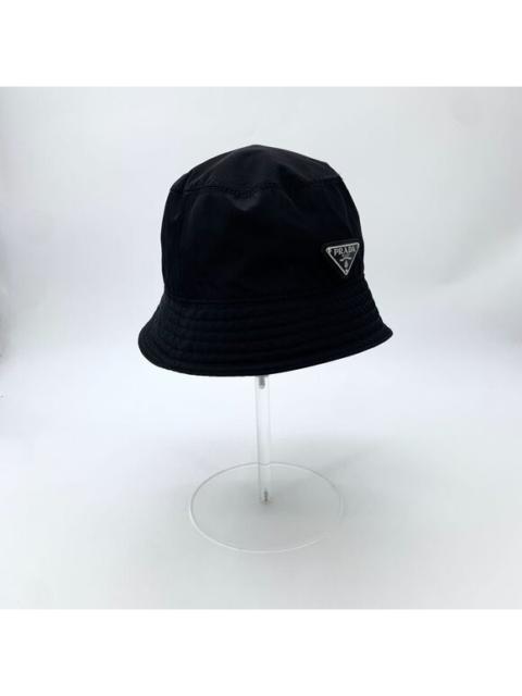 Prada Black Nylon Bucket Hat With Logo Plaque