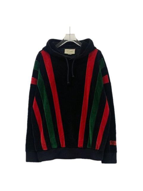 Gucci Black Velour Hoodie With Red & Green Stripes