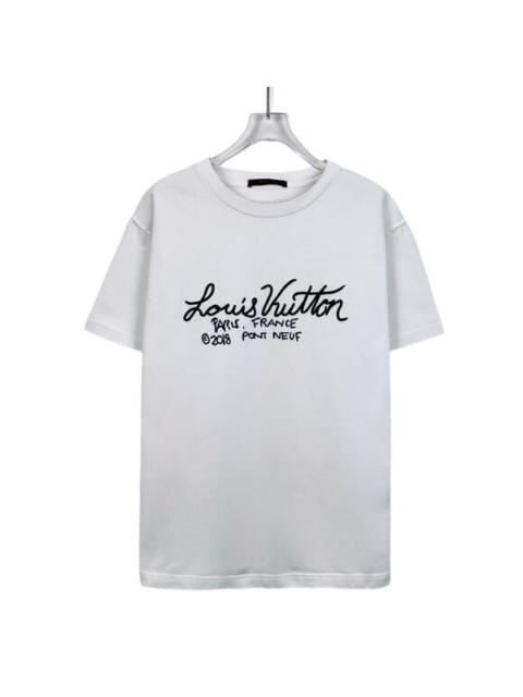 Louis Vuitton White Cotton T-Shirt With Black Script Logo Design Size Medium