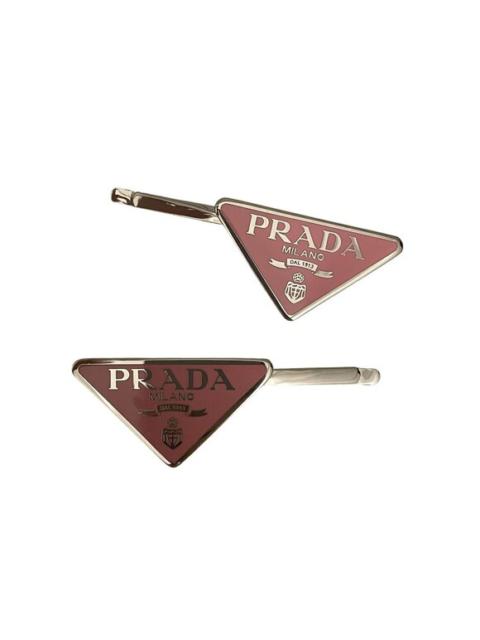 Prada Milano Pink Triangle Logo Hair Clips With Silver-Tone Accents In Original