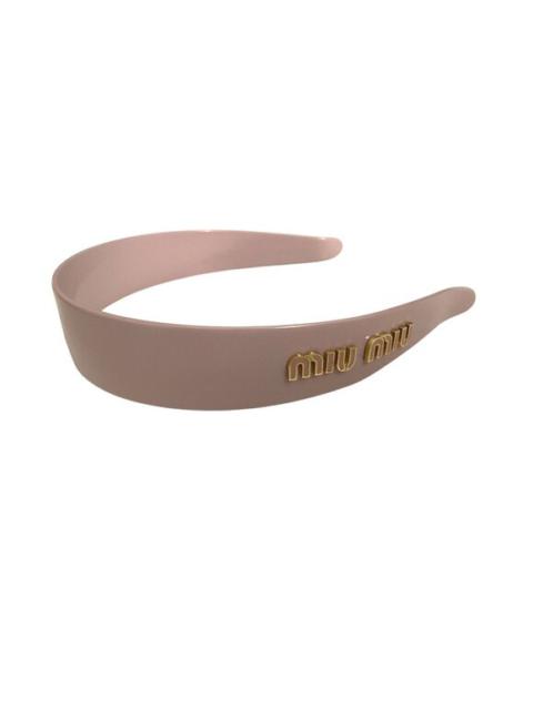 Miu Miu Womens Light Pink Logo Headband With Gold Lettering