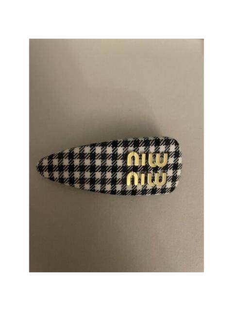 Miu Miu Black & White Plaid Hair Clip With Gold-Tone Logo Embellishment