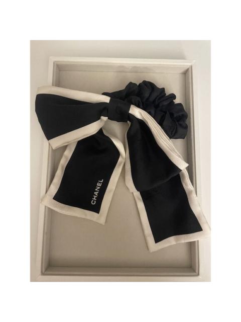 Chanel Black & White Silk Hair Scrunchie With Bow